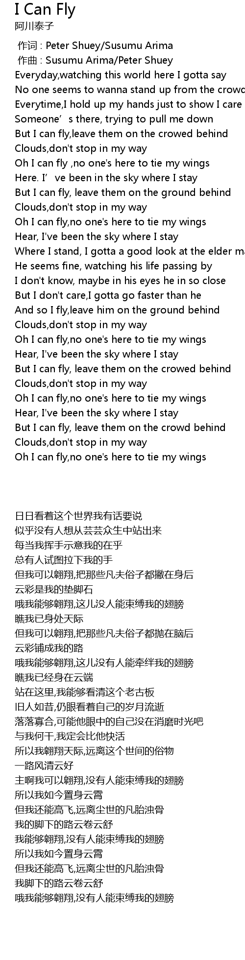 | [00:54.021] | But I can fly,leave them on the crowed behind |