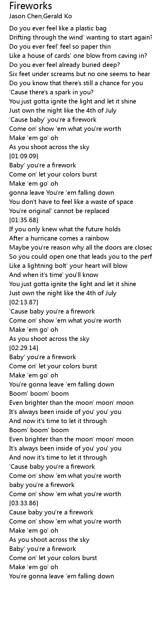 Cause baby you're a firework |