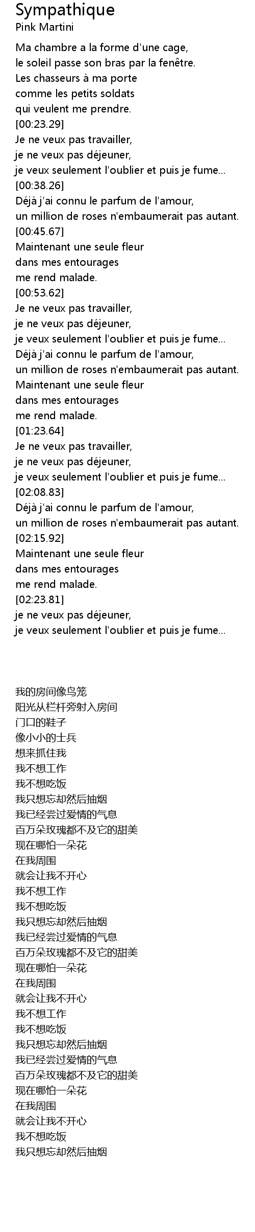 | [02:01.81] | je veux seulement l' oublier et puis je fume... |