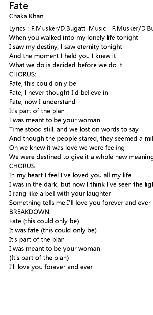 | Fate, I never thought I' d believe in | |