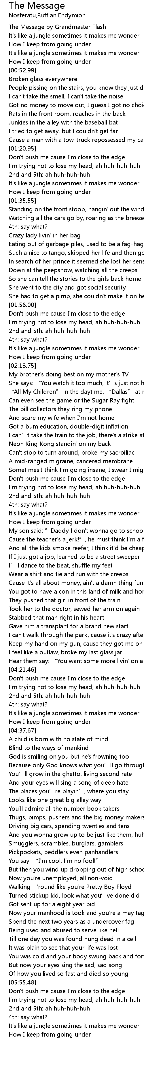 | [00:00.00] | The Message by Grandmaster Flash |