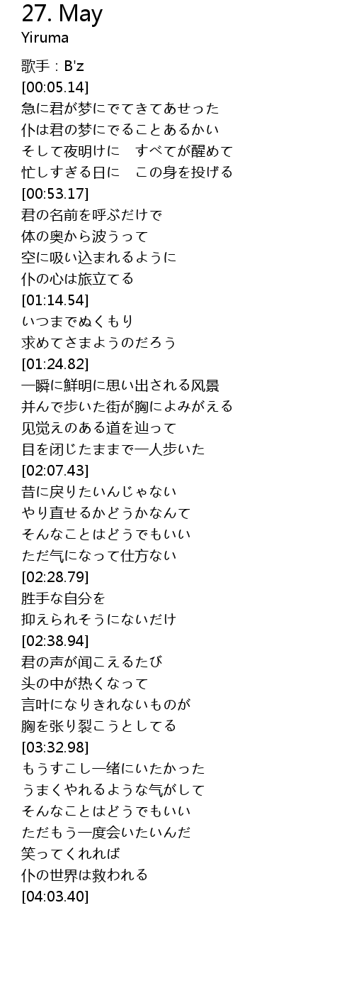 | [03:33.55] | もうすこし一绪にいたかった |