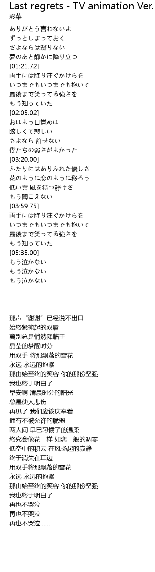 | [05:09.20] | いつまでもいつまでも抱いて |