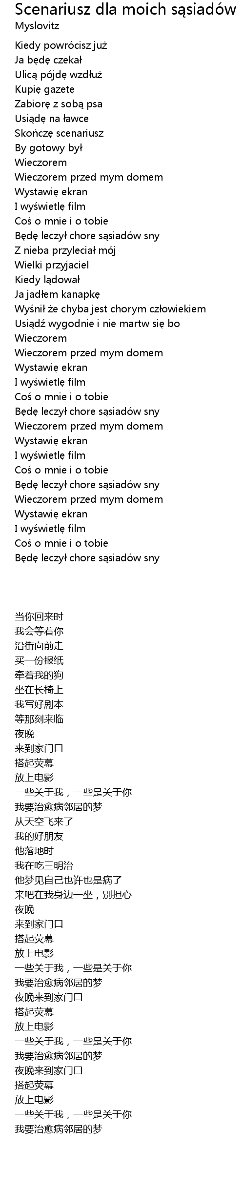 | [02:07.88] | Będę leczył chore sąsiadów sny |