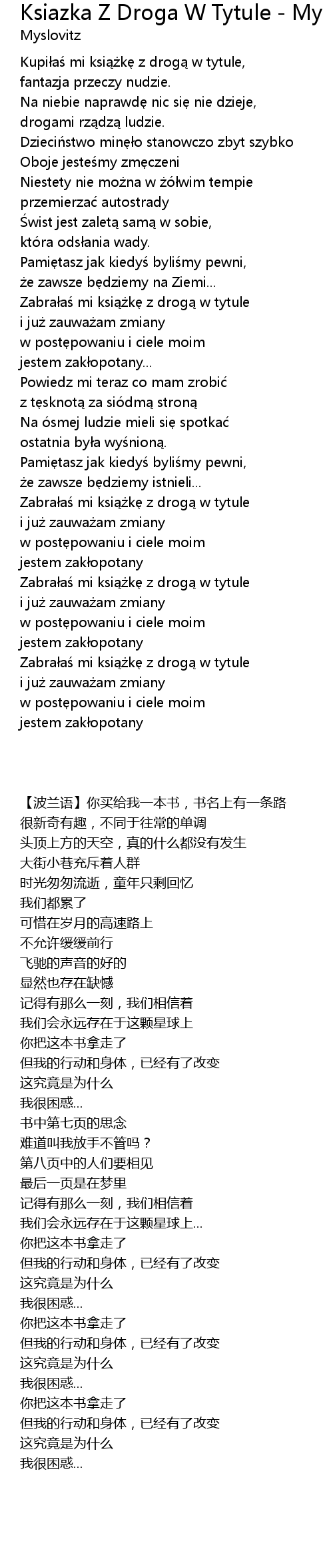 | [02:50.25] | Zabra a mi ksi k z drog w tytule |
