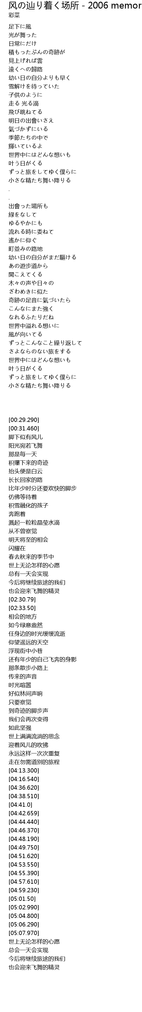 | [03:28.370] | 奇跡の足音に氣づいたら |