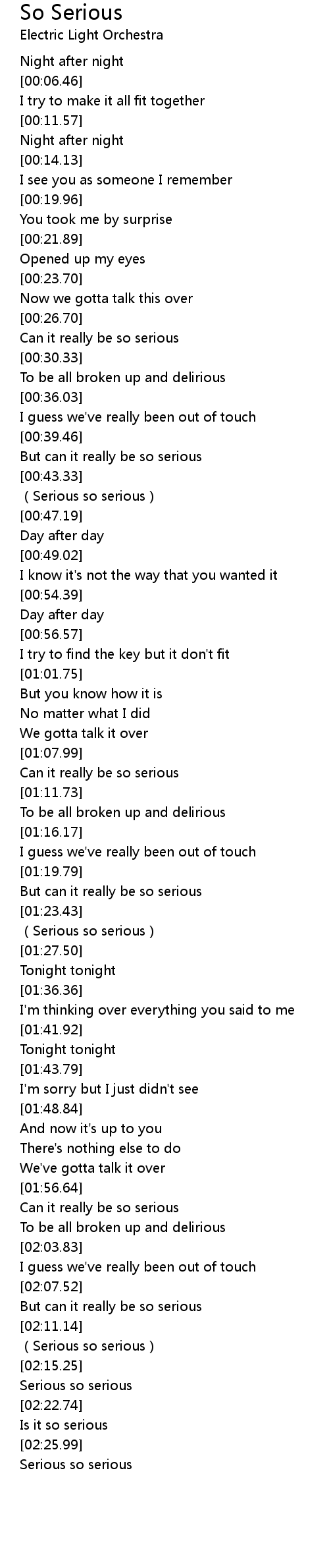 | [02:20.18] | Serious so serious |