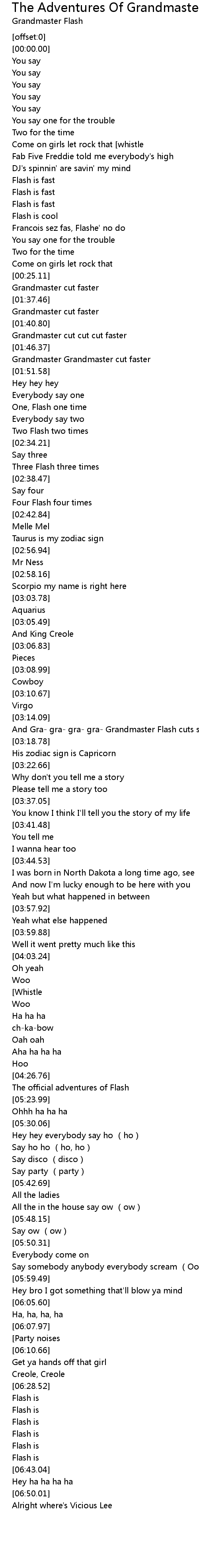 | [01:43.90] | Grandmaster cut cut cut faster |