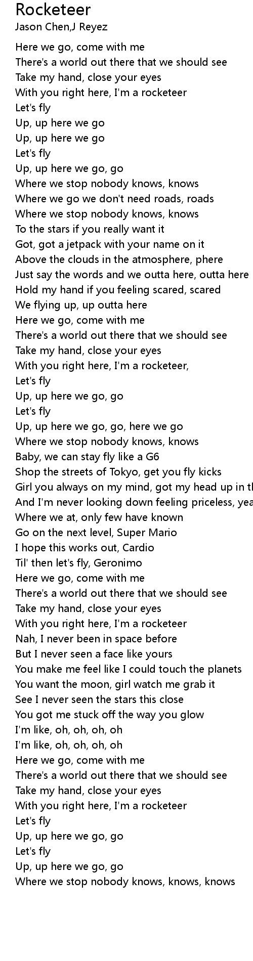 With you right here, I'm a rocketeer, |