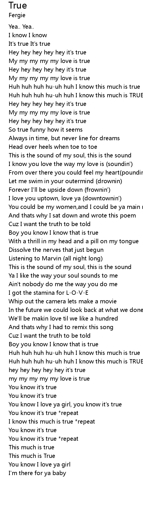 Huh huh huh hu-uh huh I know this much is TRUE |