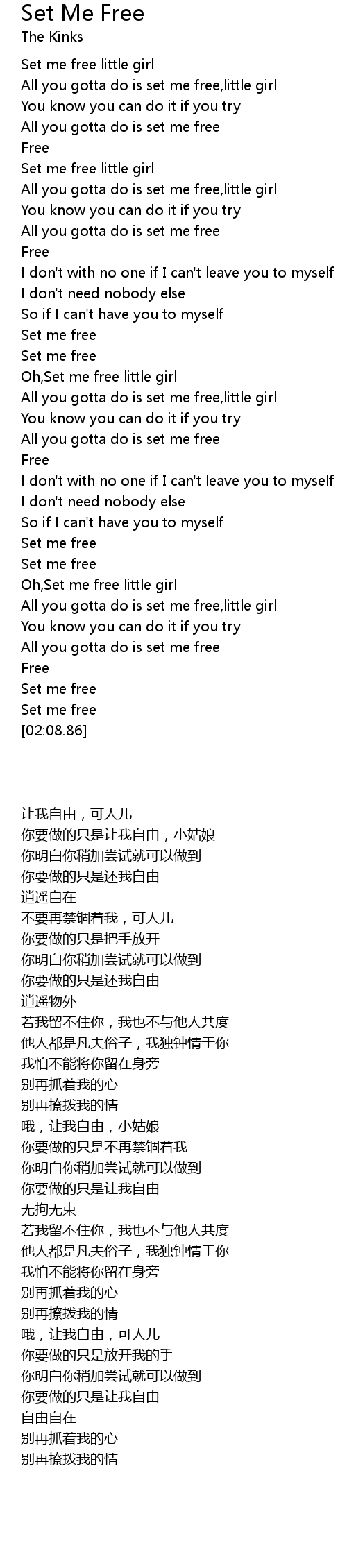 All you gotta do is set me free,little girl |