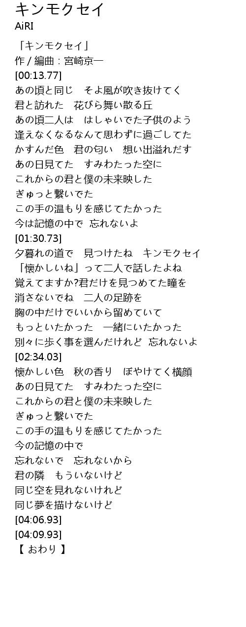 | [00:01.77] | 「キンモクセイ」 |