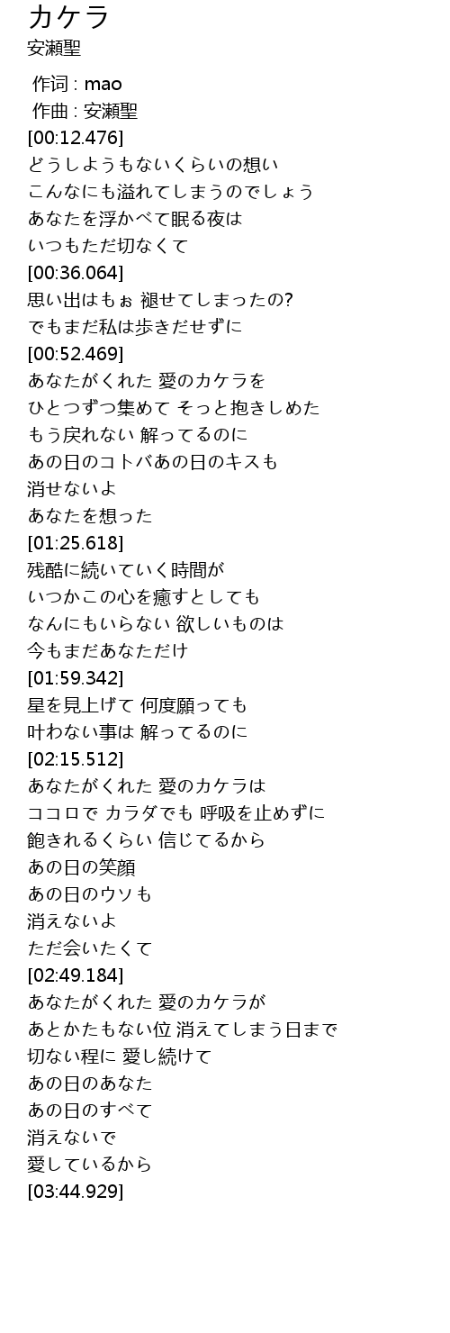 | [00:52.782] | あなたがくれた 愛のカケラを |