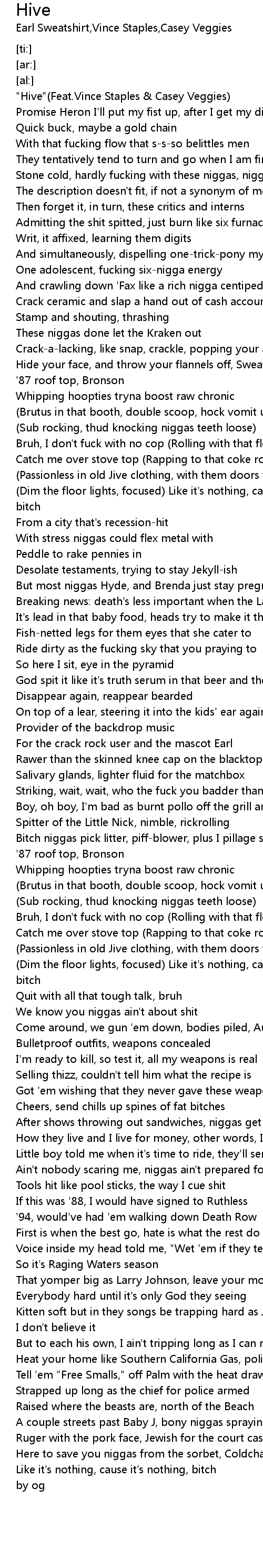 "Hive"(Feat.Vince Staples & Casey Veggies) |