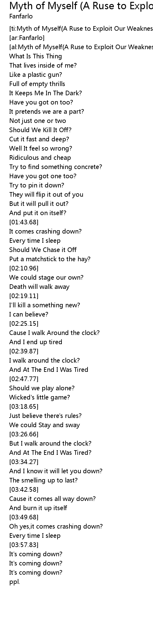 [ti:Myth of Myself(A Ruse to Exploit Our Weaknesses)] |
