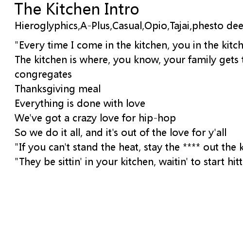 | [00:00.431] | "Every time I come in the kitchen, you in the kitchen" |