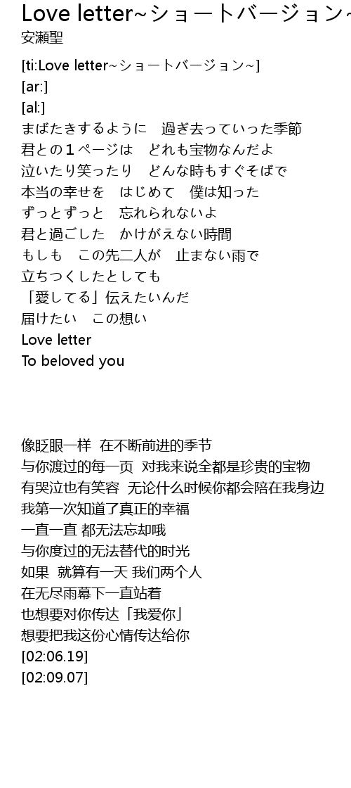 | [01:42.01] | 「愛してる」伝えたいんだ |