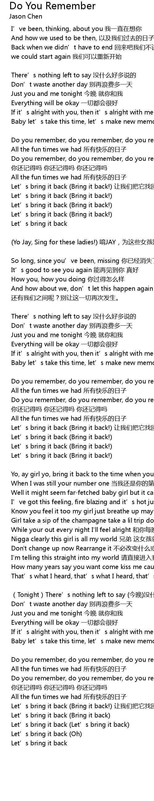 | Do you remember, do you remember, do you remember 你还记得吗 你还记得吗 你还记得吗 | |