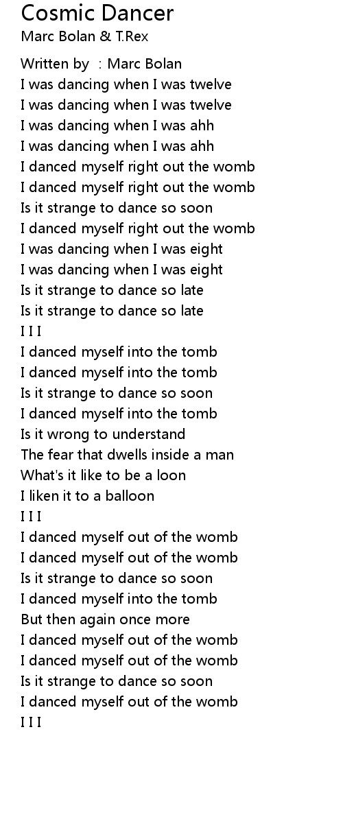 | Song | Cosmic Dancer |