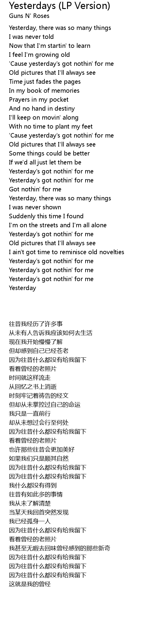 Yesterdays (LP Version) Lyrics