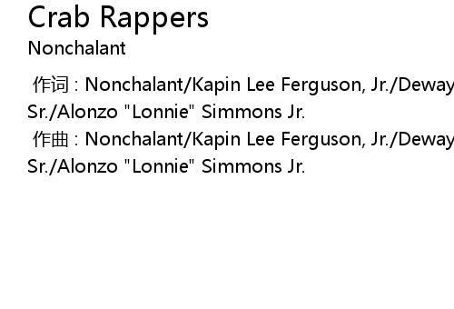 | [00:00.000] | 作词 : Nonchalant/Kapin Lee Ferguson, Jr./Dewayne "Bam" Staten Sr./Alonzo "Lonnie" Simmons Jr. |