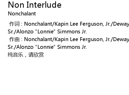| [00:01.000] | zuo qu : Nonchalant Kapin Lee Ferguson, Jr. Dewayne " Bam" Staten Sr. Alonzo " Lonnie" Simmons Jr. |