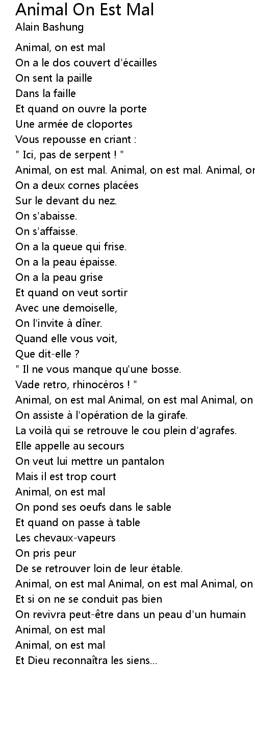 | Animal, on est mal. Animal, on est mal. Animal, on est mal. | |