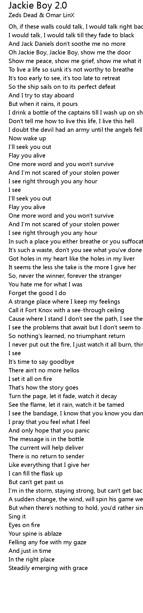 Oh Jackie Boy, Jackie Boy, show me the door |
