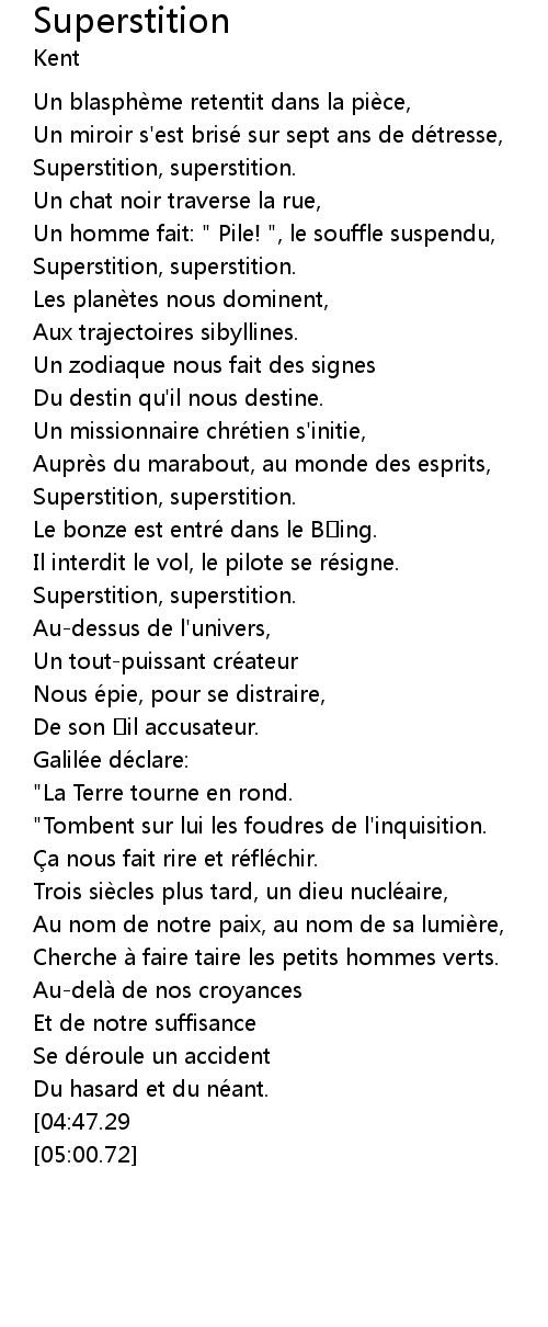 | [04:51.89][04:47.29][04:42.29][04:37.72][04:32.59][04:22.96][04:13.35][04:03.75][03:54.09] | Superstition, |