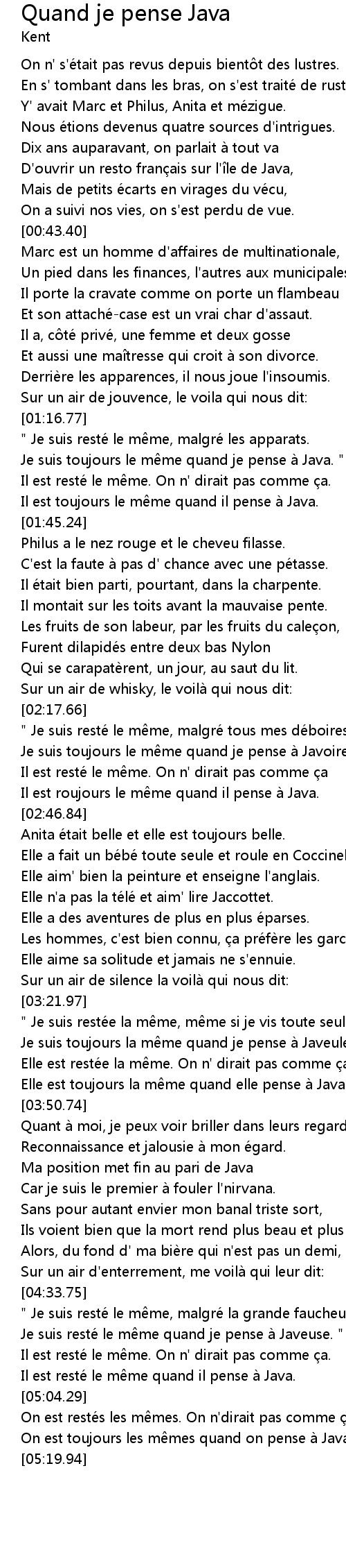| [01:25.99] | Je suis toujours le même quand je pense à Java. " |