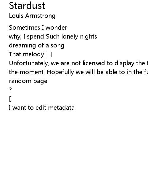| Unfortunately, we are not licensed to display the full lyrics for this song at the moment. Hopefully we will be able to in the future. Until then, how about a | |