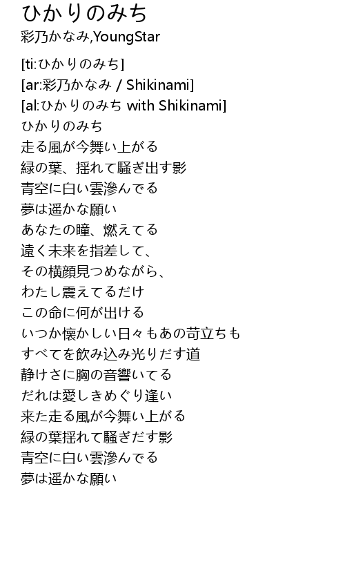 | [00:43.50] | 緑の葉、揺れて騒ぎ出す影 |