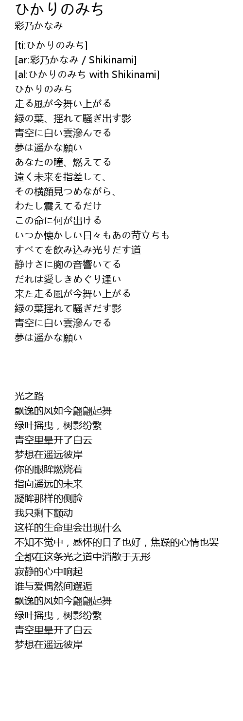 | [00:43.50] | 緑の葉、揺れて騒ぎ出す影 |