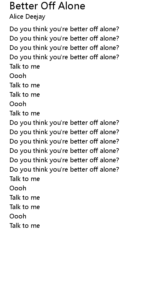 | Do you think you're better off alone? | |