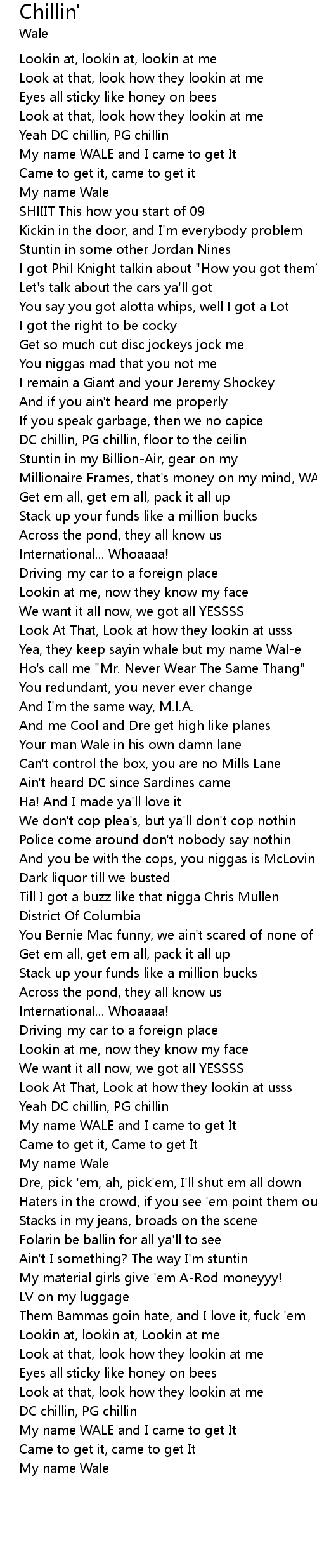 Yeah DC chillin, PG chillin |