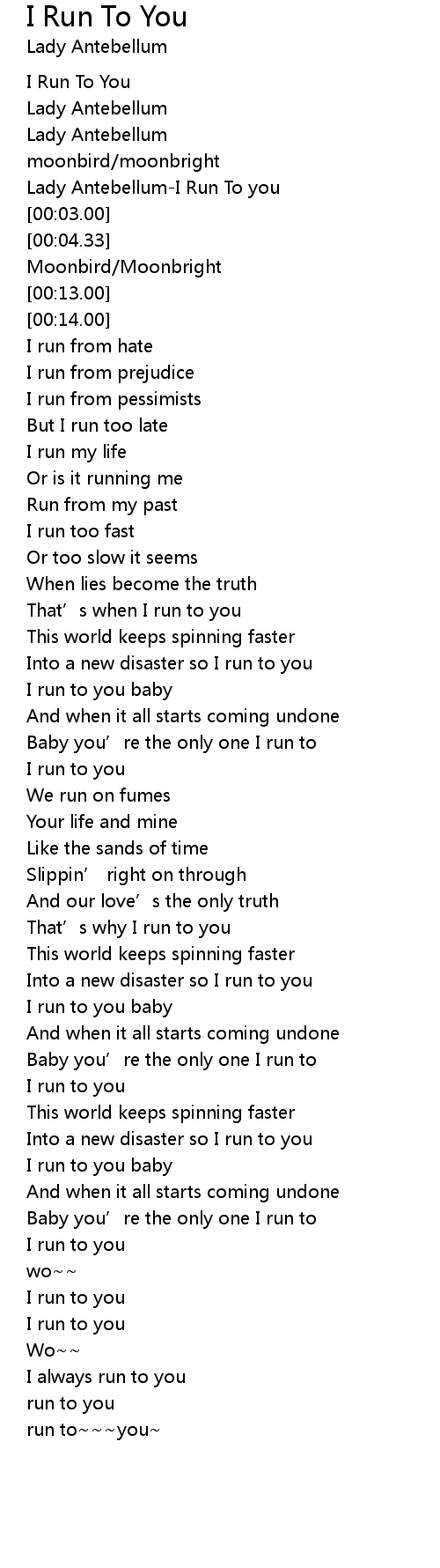 | [00:01.31] | Lady AntebellumI Run To you |