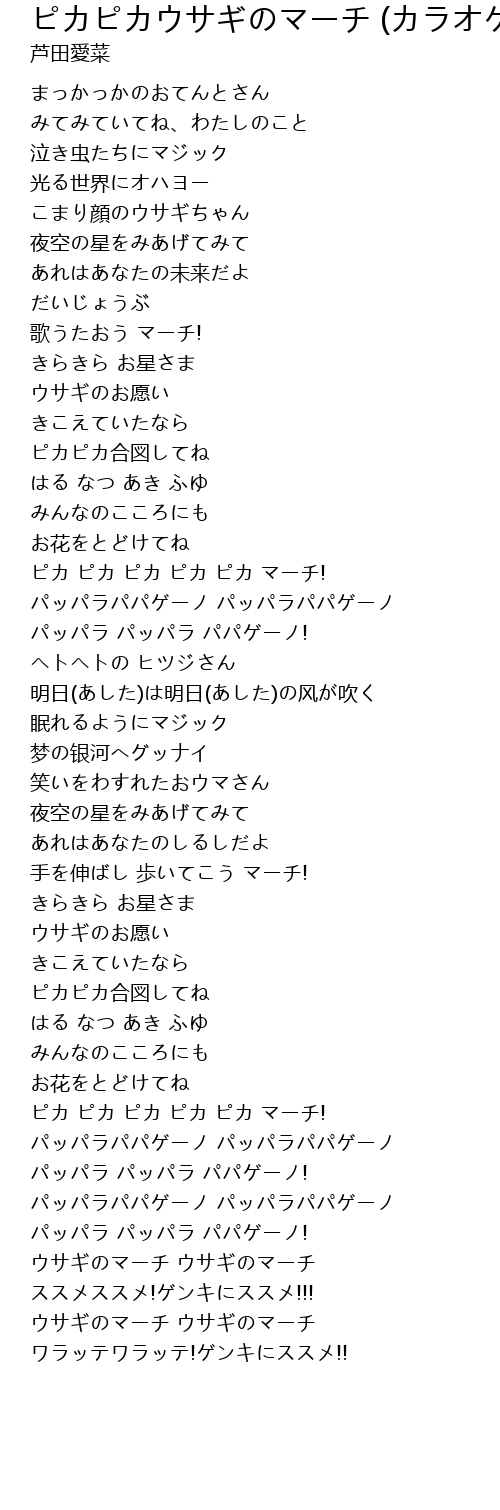 | Song | ピカピカウサギのマーチ (カラオケ) |