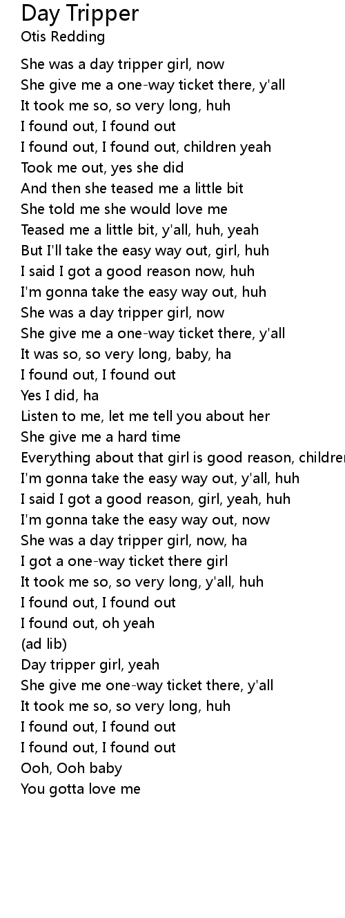 She was a day tripper girl, now |