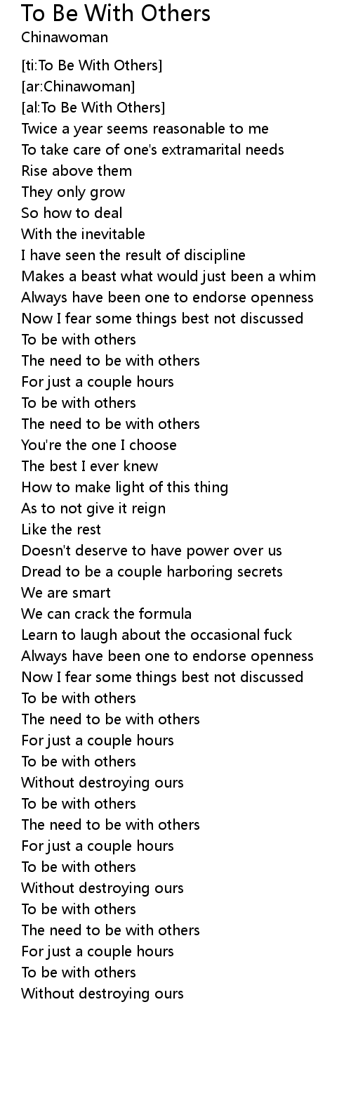 [ti:To Be With Others] |