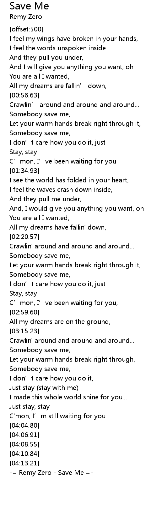 | [04:15.39] | -= Remy Zero - Save Me =- |