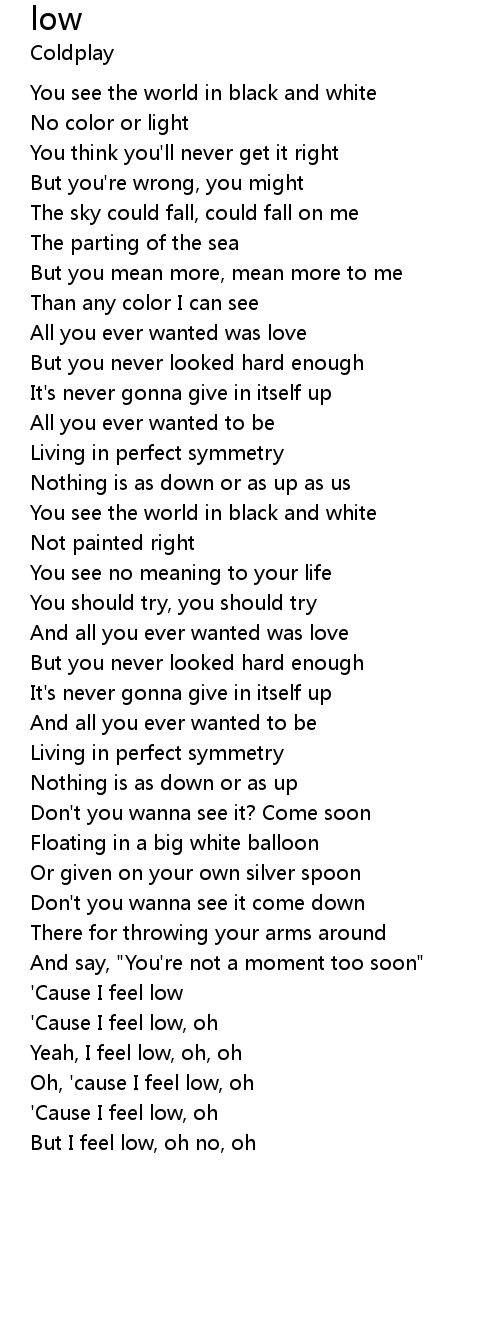 | Oh, 'cause I feel low, oh | |