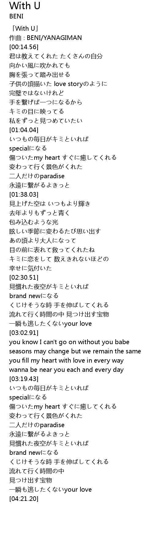 | [00:01.56] | 「With U」 |