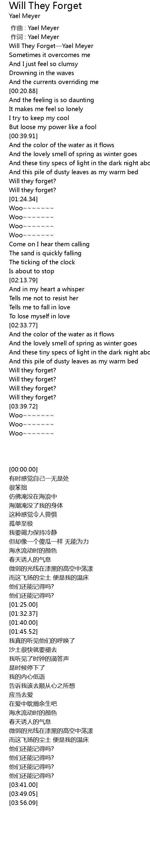 | [00:00.00] | Will They Forget—Yael Meyer |