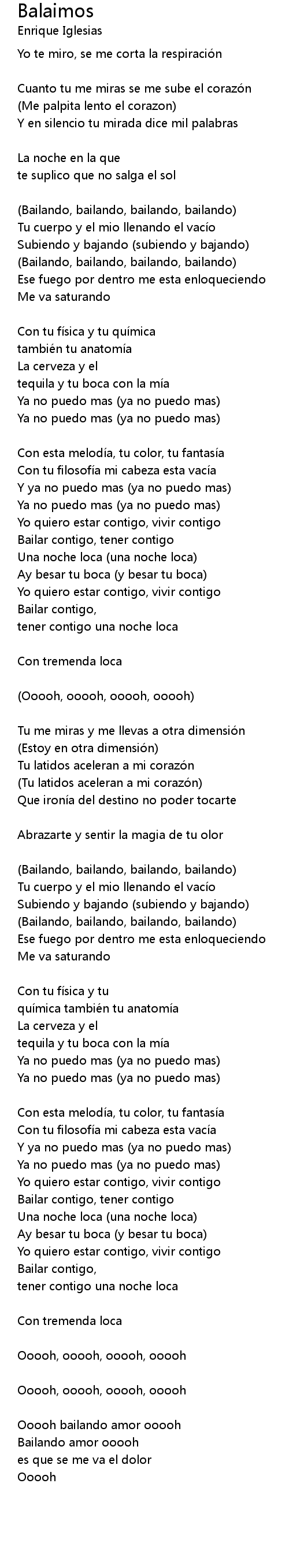 | (Bailando, bailando, bailando, bailando) | |