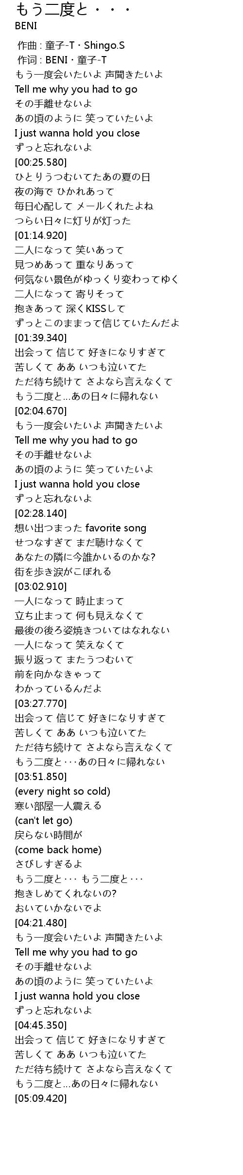 | [04:09.920] | もう二度と・・・ もう二度と・・・ |