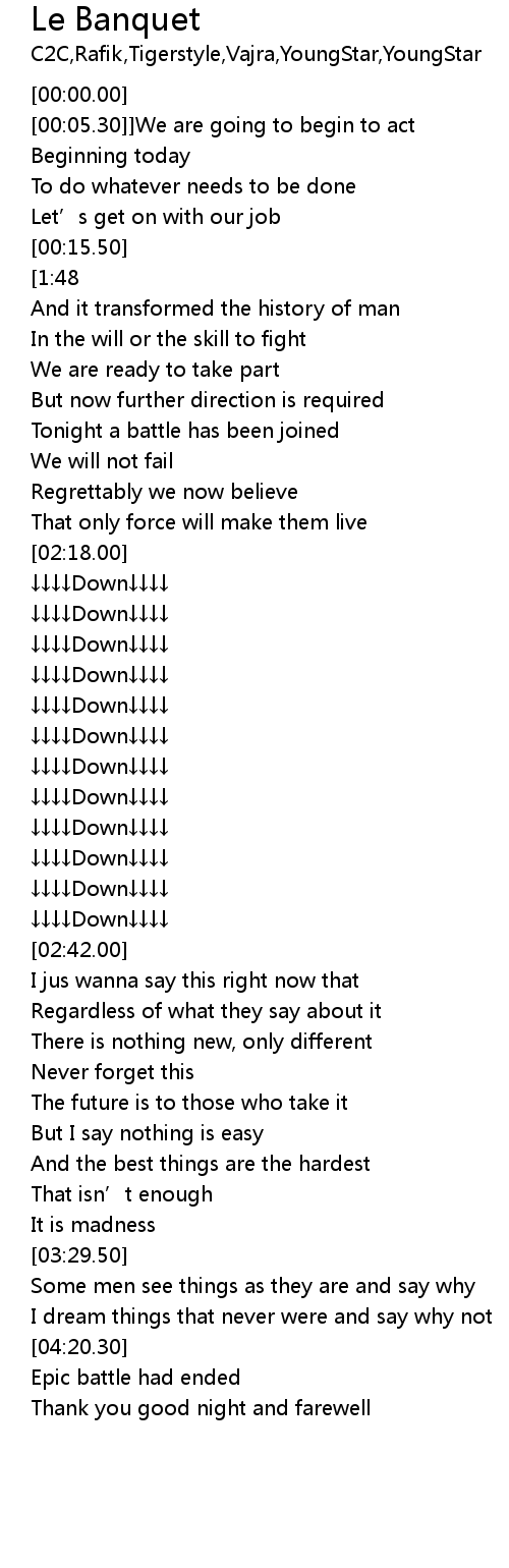 | [02:38.60] | ↓↓↓↓Down↓↓↓↓ |