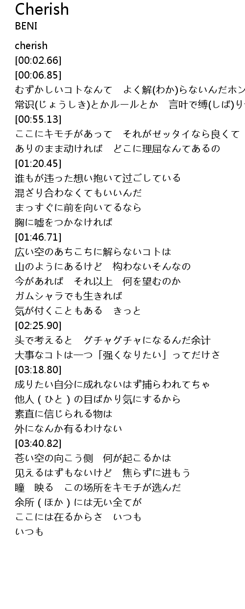| [02:05.84] | 今があれば それ以上 何を望むのか |