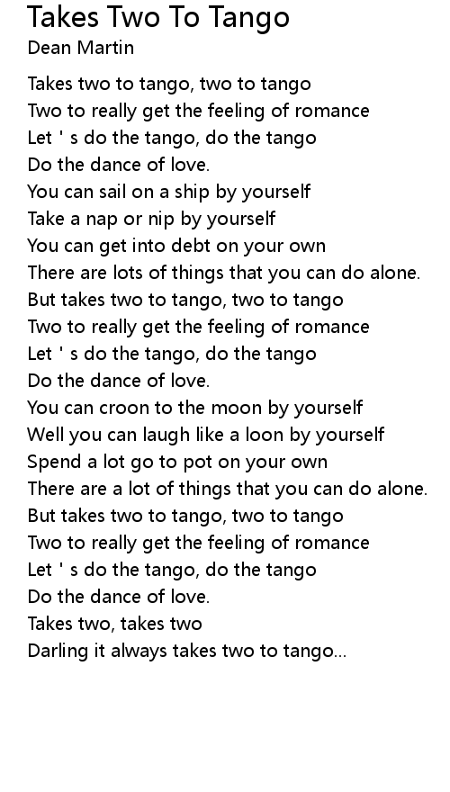 | But takes two to tango, two to tango | |