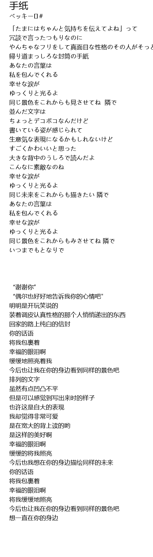 | [00:58.120] | 帰り道まっしろな封筒の手紙 |