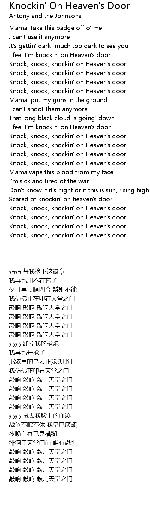 Knock, knock, knockin' on Heaven's door |